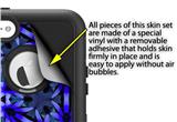 uSkins™ are self adhering vinyl decal style skins and are a great way to add a new look to your existing protective case. uSkins are a composite of two layers of commercial grade materials. The bottom layer is a soft, flexible vinyl with a special removable adhesive that is easily positioned, applied without air bubbles. Next we print the bottom layer with UV protected, fade resistant inks that deliver superb photo quality designs in vibrant colors. Finally we bond a professional grade laminate over the entire skin adding a glossy protective finish.