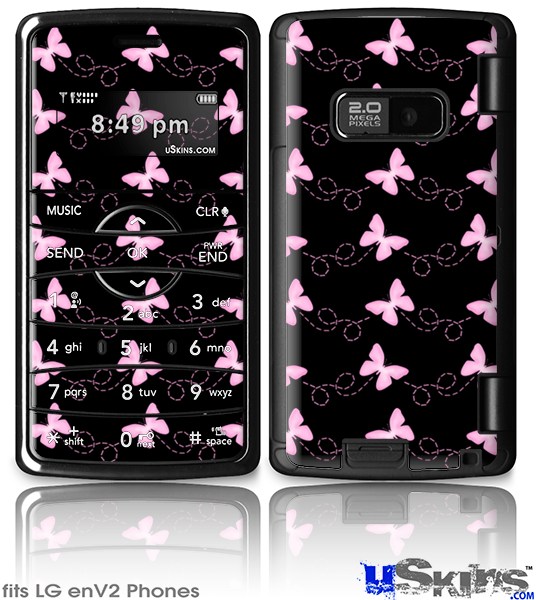 LG enV2 Skin - Pastel Butterflies Pink on Black