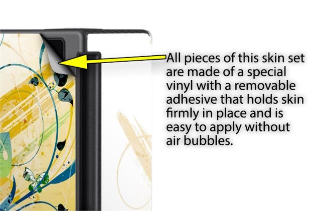 WraptoSkinz™ skins are superb photo quality designs and vibrant colors printed with special Eco-Friendly, fade resistant inks. Our skins are self-adhering flexible vinyl skins that helps prevent scratches. Made of composite, multi-layered commercial grade materials. The bottom layer is made with a special removable adhesive that is easily positioned and applied without air bubbles. We print your design on the bottom layer then bond a professional grade laminate over the entire skin adding a glossy protective finish.