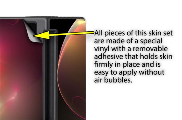 WraptoSkinz™ skins are superb photo quality designs and vibrant colors printed with special Eco-Friendly, fade resistant inks. Our skins are self-adhering flexible vinyl skins that helps prevent scratches. Made of composite, multi-layered commercial grade materials. The bottom layer is made with a special removable adhesive that is easily positioned and applied without air bubbles. We print your design on the bottom layer then bond a professional grade laminate over the entire skin adding a glossy protective finish.