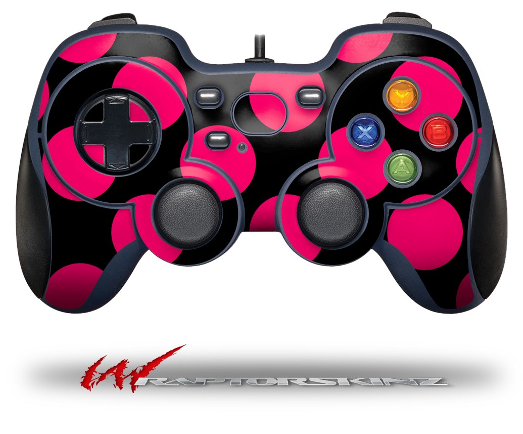 Kearas Polka Dots Pink On Black - Decal Style Skin fits Logitech F310 Gamepad Controller (CONTROLLER SOLD SEPARATELY)