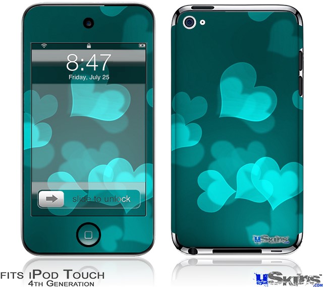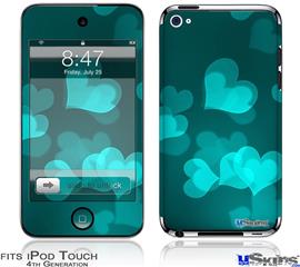 iPod Touch 4G Decal Style Vinyl Skin - Bokeh Hearts Neon Teal
