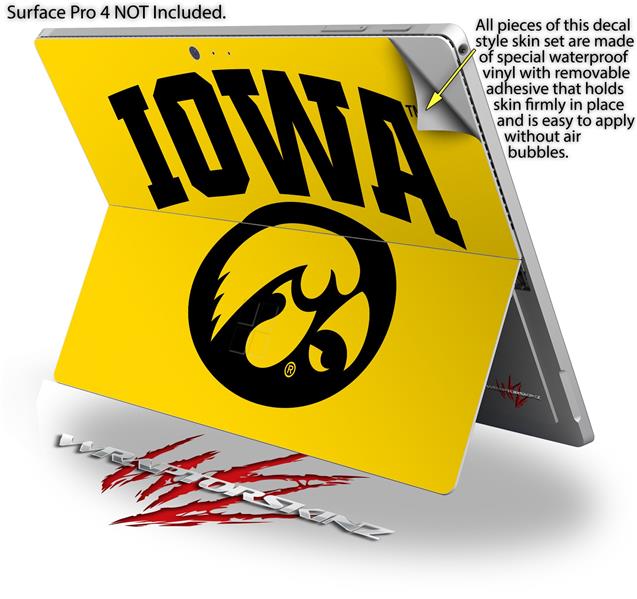 Iowa Hawkeyes Tigerhawk Oval 01 Black on Gold - Decal Style Vinyl Skin (fits Microsoft Surface Pro 4)