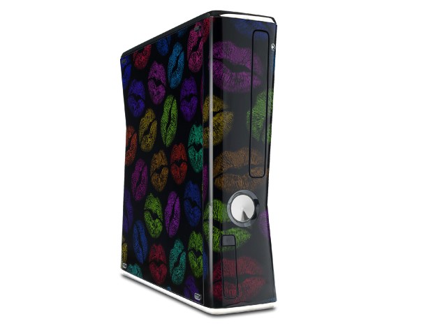 Rainbow Lips Black Decal Style Skin for XBOX 360 Slim Vertical