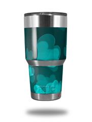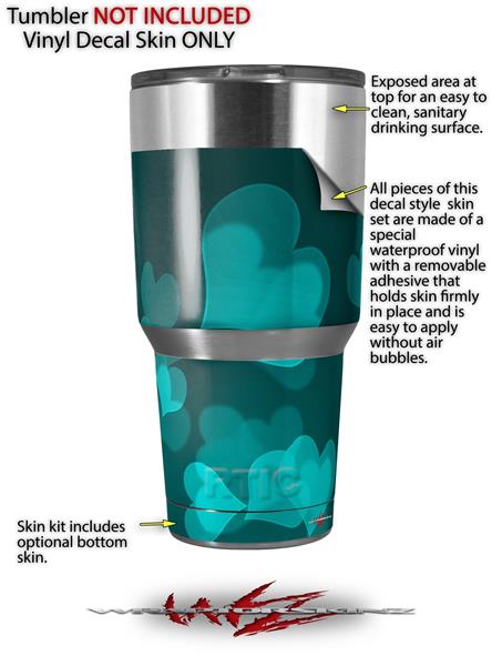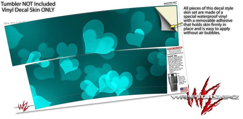 WraptorSkinz Skin Wrap compatible with RTIC 30oz ORIGINAL 2017 AND OLDER Tumblers Bokeh Hearts Neon Teal (TUMBLER NOT INCLUDED)