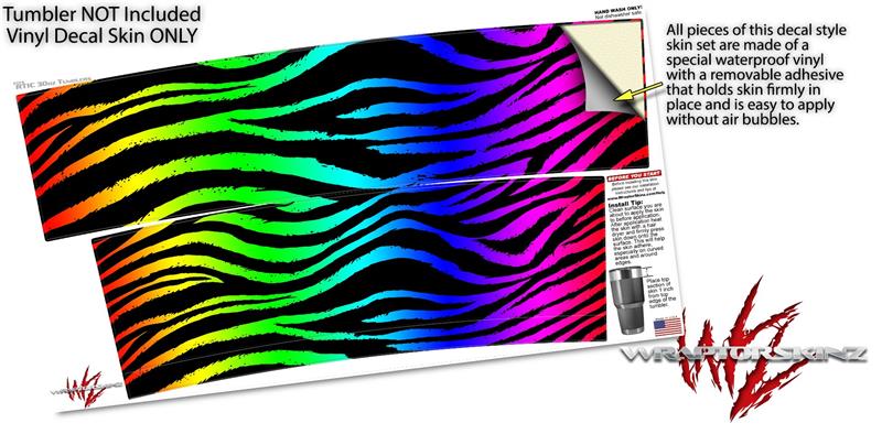 WraptorSkinz Skin Wrap compatible with RTIC 30oz ORIGINAL 2017 AND OLDER Tumblers Rainbow Zebra (TUMBLER NOT INCLUDED)