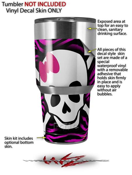 WraptorSkinz Skin Wrap compatible with RTIC 30oz ORIGINAL 2017 AND OLDER Tumblers Pink Zebra Skull (TUMBLER NOT INCLUDED)