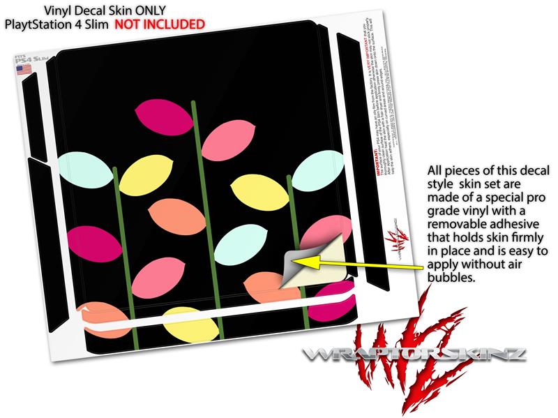 Vinyl Decal Skin Wrap compatible with Sony PlayStation 4 Slim Console Plain Leaves On Black (PS4 NOT INCLUDED)