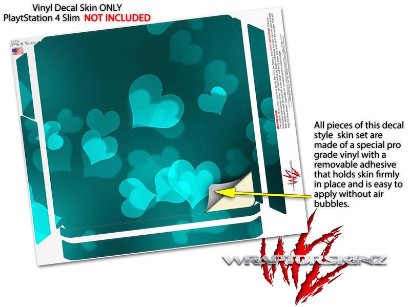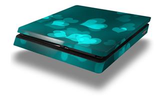 Vinyl Decal Skin Wrap compatible with Sony PlayStation 4 Slim Console Bokeh Hearts Neon Teal (PS4 NOT INCLUDED)