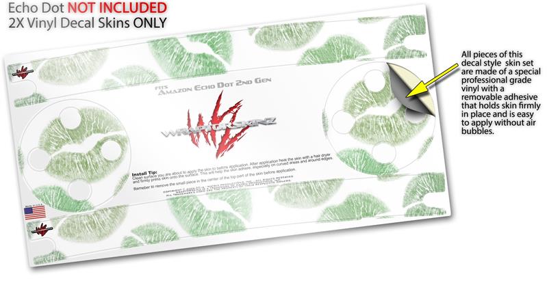 Skin Wrap Decal Set 2 Pack for Amazon Echo Dot 2 - Green Lips (2nd Generation ONLY - Echo NOT INCLUDED)