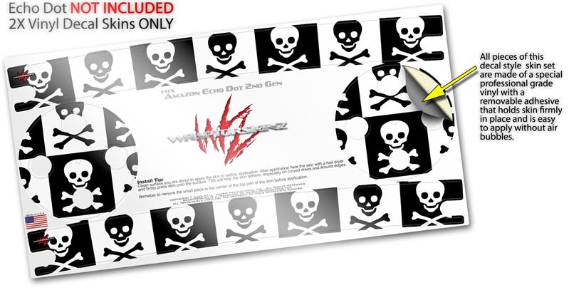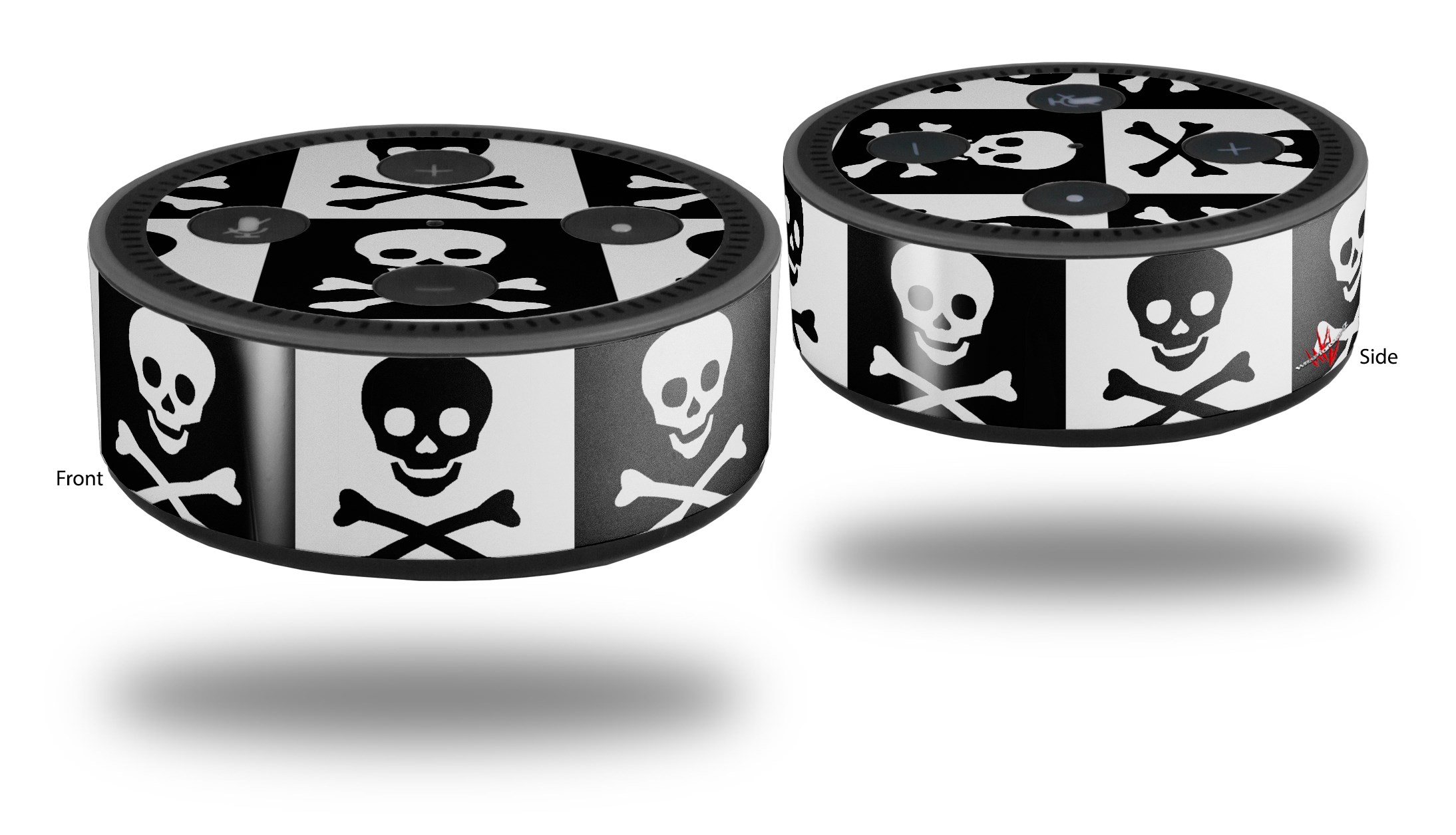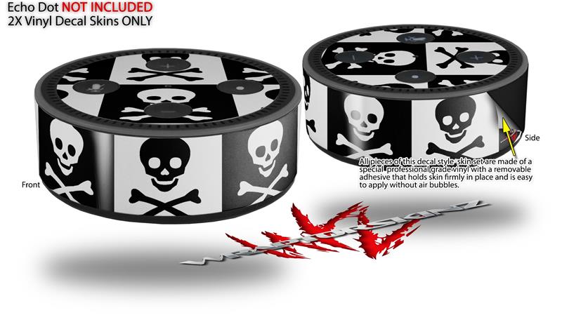 Skin Wrap Decal Set 2 Pack for Amazon Echo Dot 2 - Skull Checkerboard (2nd Generation ONLY - Echo NOT INCLUDED)