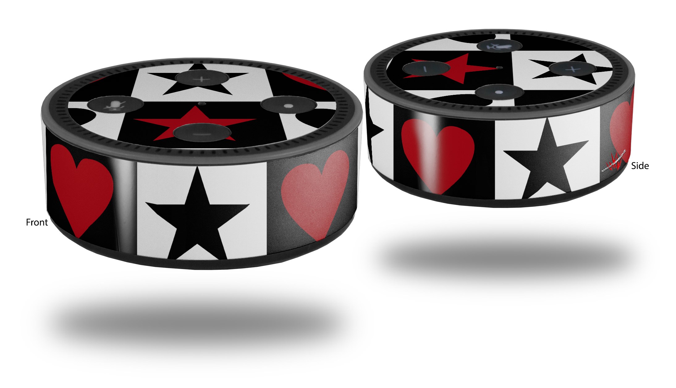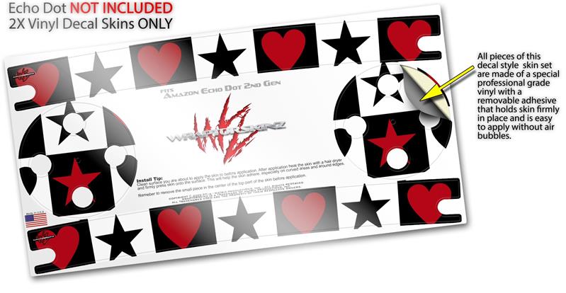 Skin Wrap Decal Set 2 Pack for Amazon Echo Dot 2 - Hearts and Stars Red (2nd Generation ONLY - Echo NOT INCLUDED)