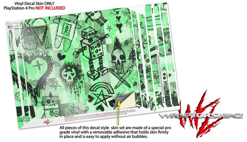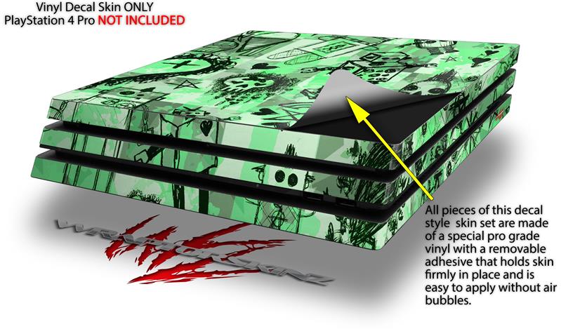 Vinyl Decal Skin Wrap compatible with Sony PlayStation 4 Pro Console Scene Kid Sketches Green (PS4 NOT INCLUDED)