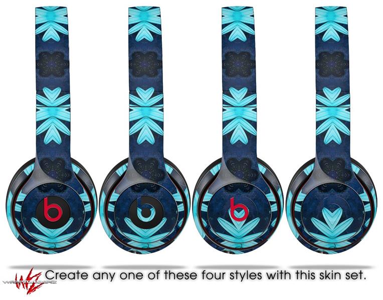 WraptorSkinz Skin Decal Wrap compatible with Beats Solo 2 and Solo 3 Wireless Headphones Abstract Floral Blue (HEADPHONES NOT INCLUDED)