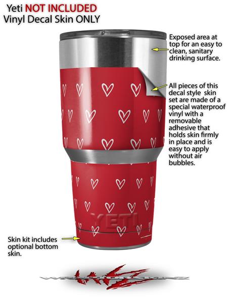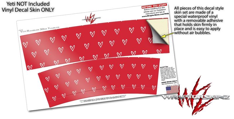 Skin Decal Wrap for Yeti Tumbler Rambler 30 oz Hearts Red On White (TUMBLER NOT INCLUDED)