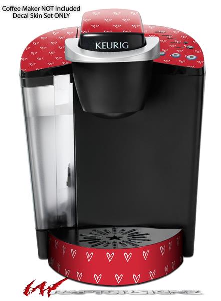 Decal Style Vinyl Skin compatible with Keurig K40 Elite Coffee Makers Hearts Red On White (KEURIG NOT INCLUDED)