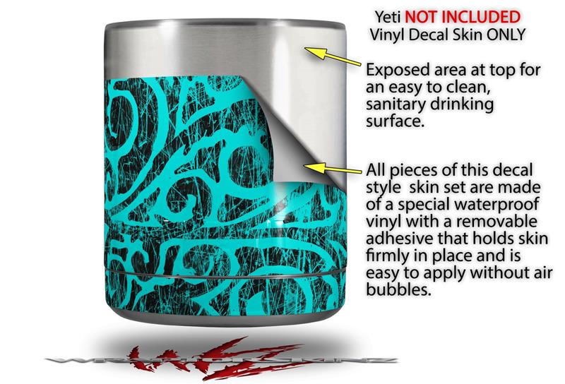 Skin Decal Wrap for Yeti Rambler Lowball - Folder Doodles Neon Teal
