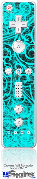 Wii Remote Controller Face ONLY Skin - Folder Doodles Neon Teal