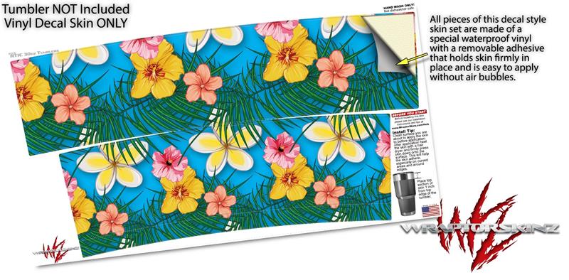 WraptorSkinz Skin Wrap compatible with RTIC 30oz ORIGINAL 2017 AND OLDER Tumblers Beach Flowers 02 Blue Medium (TUMBLER NOT INCLUDED)