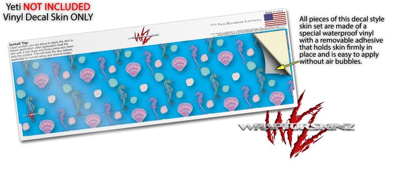 Skin Decal Wrap for Yeti Rambler Lowball - Seahorses and Shells Blue Medium
