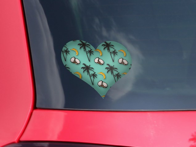 Coconuts Palm Trees and Bananas Seafoam Green - I Heart Love Car Window Decal 6.5 x 5.5 inches