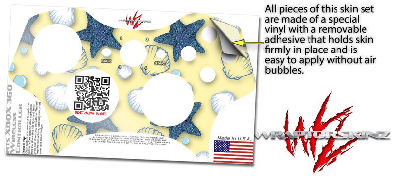 XBOX 360 Wireless Controller Decal Style Skin - Starfish and Sea Shells Yellow Sunshine (CONTROLLER NOT INCLUDED)