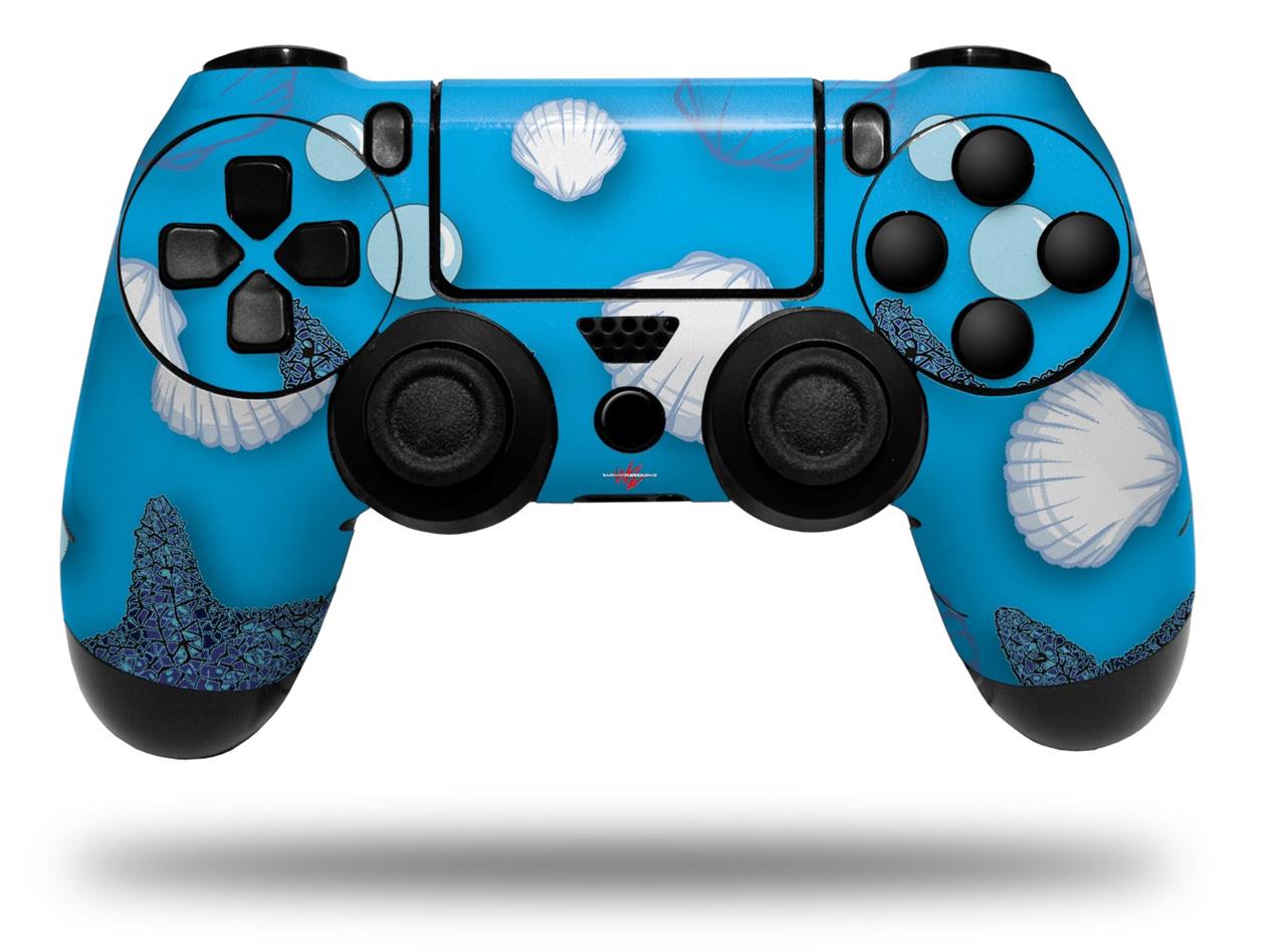 WraptorSkinz Skin compatible with Sony PS4 Dualshock Controller PlayStation 4 Original Slim and Pro Starfish and Sea Shells Blue Medium (CONTROLLER NOT INCLUDED)