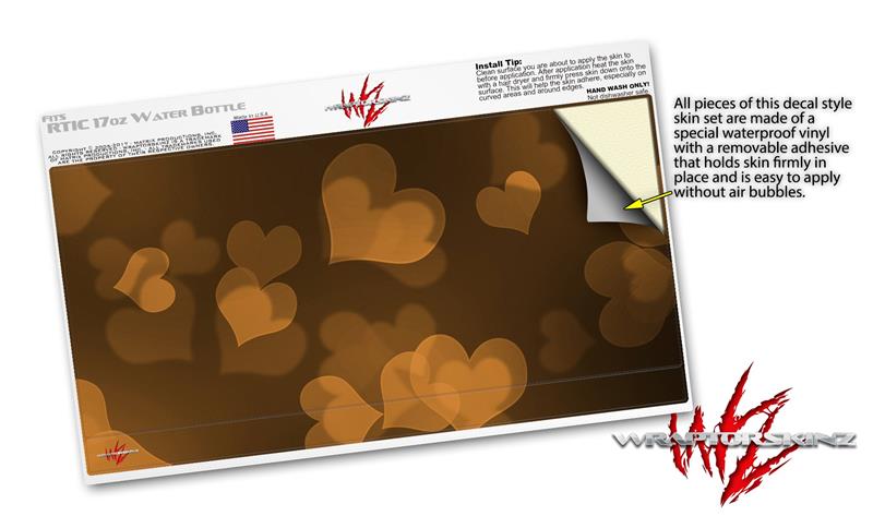 Skin Decal Wrap for RTIC Water Bottle 17oz Bokeh Hearts Orange (BOTTLE NOT INCLUDED)