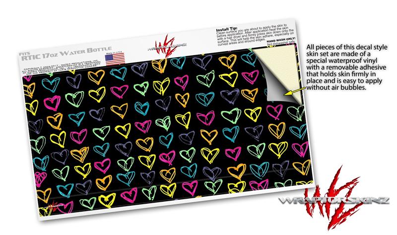 Skin Decal Wrap for RTIC Water Bottle 17oz Kearas Hearts Black (BOTTLE NOT INCLUDED)