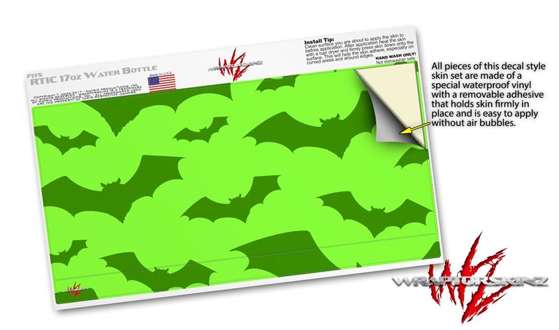 Skin Decal Wrap for RTIC Water Bottle 17oz Deathrock Bats Green (BOTTLE NOT INCLUDED)