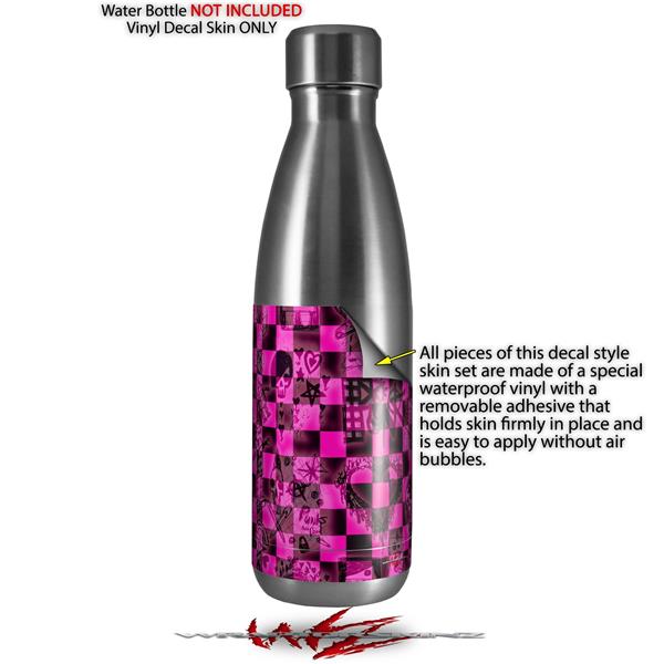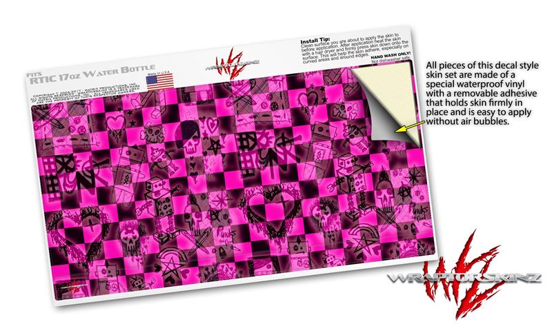 Skin Decal Wrap for RTIC Water Bottle 17oz Pink Checkerboard Sketches (BOTTLE NOT INCLUDED)