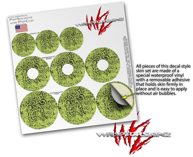 Decal Style Vinyl Skin Wrap 3 Pack for PopSockets Folder Doodles Sage Green (POPSOCKET NOT INCLUDED)