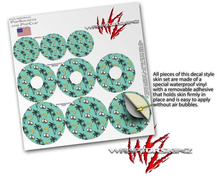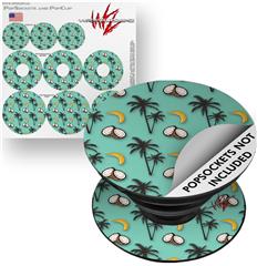 Decal Style Vinyl Skin Wrap 3 Pack for PopSockets Coconuts Palm Trees and Bananas Seafoam Green (POPSOCKET NOT INCLUDED)